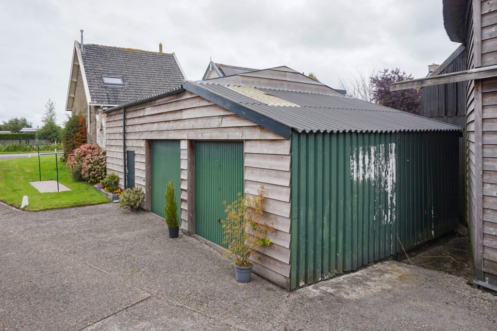 -De huidige erfdienstbaarheid van de uitweg komt te vervallen en de garage-/schuurdeuren aan de rechterzijde (vanaf de Rodenrijseweg gezien) gaan dicht door middel van gepotdekselde delen;