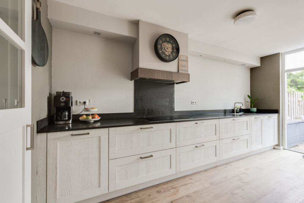 Indeling; Hal/entree met de meterkast, toegang tot de toilet en de trapopgang (met trapkast) naar de eerste verdieping. Bij binnenkomst stapt u in de ruime doorzon woonkamer met gezellige pelletkachel en fraai uitzicht op het groen aan de voorzijde. Aan de achterzijde is de woning sfeervol uitgebouwd met dubbele deuren naar de achtertuin. Heerlijke achtertuin, welke is voorzien van een elektrisch zonnescherm aan de achterzijde van de woning, een schuur en achterom naar de bijbehorende garage. De semi open keuken beschikt over veel bergruimte, een lang werkblad en de nodige apparatuur zoals een vaatwasser (2025), oven, stoomoven, inductieplaat, koel/vriescombinatie en een spoelbak met Quooker kraan. Ook hier kunt u via een deur de achtertuin betreden. De begane grond is voorzien van een PVC vloer met vloerverwarming (is bijverwarming).