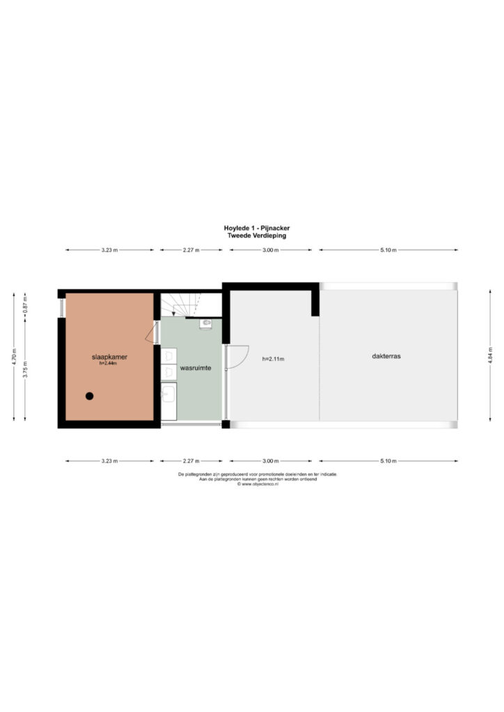 2e verdieping: Overloop met een kitchenette, cv-ketel, wtw-unit en wasmachine- en drogeropstelling. Op de overloop is een deur om het dak te bereiken, waar u een dakterras kunt realiseren. Daarnaast is er op deze verdieping een grote slaapkamer van ca. (323 x 470cm.)